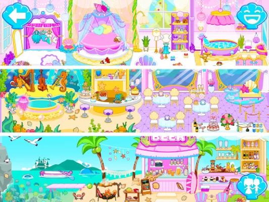 Multiple houses to choose: Dive into all the secrets, such as the royal palace with cute cat and horse, Youth Spring, the beach, the salon room, and the undersea boat.