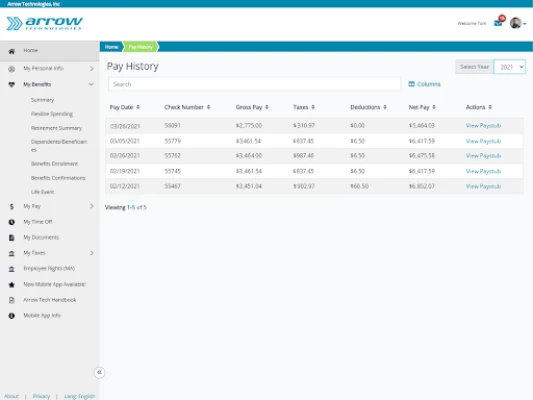 A complete headache. I have never worked for a company where it was difficult to get a copy of a pay stub. The service is unreliable at best and apathetic at worst.