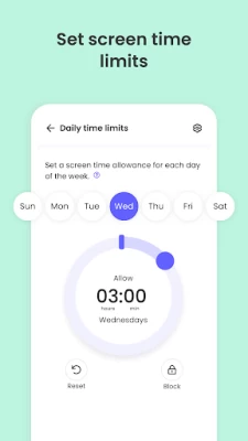 - Screen Time Control: Automatically blocks the device after the set time has passed