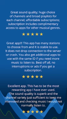 Good music selection. App works well experienced over several years and phones. Can be a bit of a data hog if you pick higher quality streaming. Only wish is that the music selection be a bit wider and changing. Now that I have been listening my fav stations for about 8 years now, sometimes it feels repetitive. By the way I have the premium subscription, worht every penny. Ads were so repetitive and out of my interest areas.