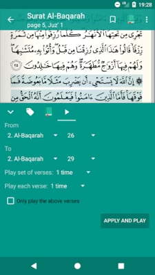 very good application. Has everything that is needed. only need to update the playing mood so it starts on the start of the sourah when we choose the sourah that we want to play.