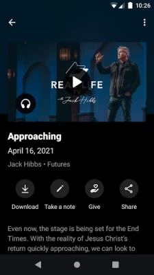 Excellent app for a courageous, humble, wise, complete Bible teaching. Pastor Jack Hibbs leaves no book or verse out of his teachings. Best Pastor I've had the privilege of learning from. This Church app also has other things for new and seasoned Christians. You'll find live feeds, radio, podcasts and more on this one app. CCCH has other apps. If you watch on YouTube just be careful you aren't on the impostors channel who is trying to make $$$$. Pastor Hibbs will never ask for money -ever!
