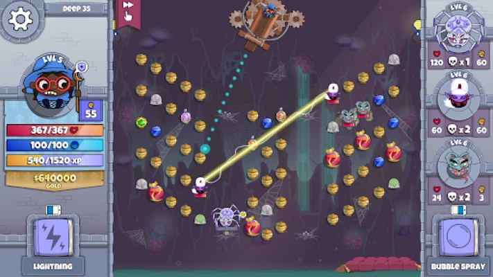 Bad phone port. You'd think that a Peggle clone would work well on a phone, but Roundguard was designed for PC doesn't work well on a phone. By default the view zooms in on your character (ball), but you NEED to see the whole board for spells like the wizard's lightning that zaps targets all the way to the edge of the board. It's also difficult to activate spells at the exact right moment using on-screen buttons instead of a mouse. Get this for PC, where you can often get it for a dollar.