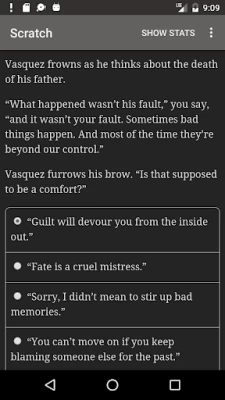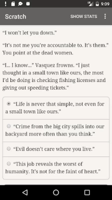 This is a detective story where you are investigating a mass grave of young women that were murdered. The writing is decent but this story was different in the way that it functioned. There were no stats and the different endings seemed random. I suspect the investigation itself has little to no bearing on the actual ending. Essentially the ending is randomized. I enjoyed the dark storyline with a classic whodunnit plot. This story has a lot of content in it that lends well to replayability.