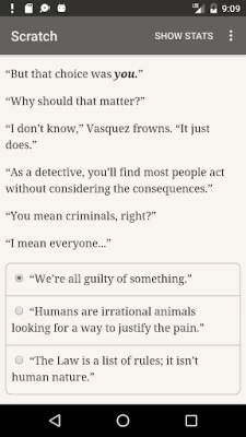 i don't understand the question mechanic, but the story and writing was by far the best I've seen in a while.