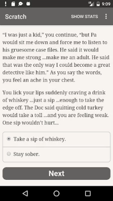 So much potential but the writing is so lazy. 1) No, you can't choose to play as male or female. 2) Even if you never drink your whiskey, the game will treat you as if you drink all the time. 3) Random killer with no hints beforehand. This game gives you little choice and you can't guess the killer based on the clues bcs the game doesn't work that way. A bad CYOA game.
