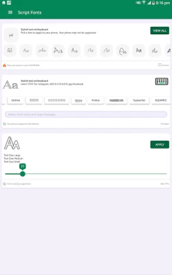 I downloaded this app on my Galaxy A14 5G for the purpose of changing my phones main fonts. When I opened the app, all of the features worked except for the one I downloaded it for. I uninstalled