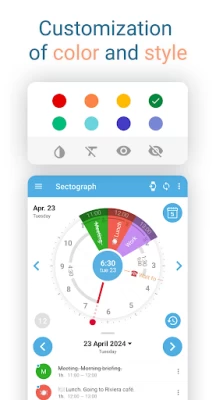 Good app, but not exactly what I was looking for. This app uses your calendar events and organizes them in the circle. The controls are great, I love when I move the red time bar it scrolls through all the things and shows the time changing. Love the widget. I wanted this to work out a homeschool schedule. I ended up having to make a new calendar and syncing only that one. I was able to change the colors of each event in the app. Very easy to use overall.