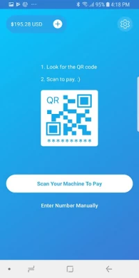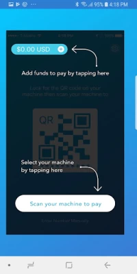 So far I haven't gotten it to work. It'll take my money, of course, but won't start my machine. QR won't scan, maybe too low light. App should allow the camera flash function while scanning QR. So I enter the machine ID manually... Doesn't work. And then it'll crash randomly, and has no "exit" function. So the app needs some work. All it does successfully is charge my bank and that's it. Fun