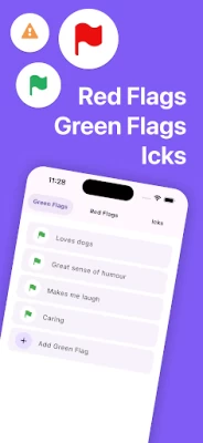 - Partner Traits: Add and track partner traits such as Red Flags, Green Flags and Icks to gain valuable insights.