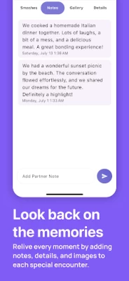 - Custom Notes: Add personalized notes for each partner and smash, ensuring you remember every detail.