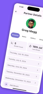 • Custom Notes: Add personalized notes for each partner and smash, ensuring you remember every detail.