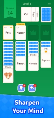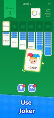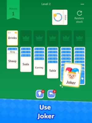 It's a really nice challenge, with having to be careful with the limited spaces and how one plays the cards (just like in regular solitaire) and then adding word associations, especially when certain words may fit multiple categories! I think I've only had this for a week or two, but I already beat all the levels 😠can't wait for more, and the only ads are when you restart or use a joker (seems like based on a other reviews a lot of them just needed to use more of those than they liked)