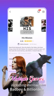 Great stories, but when someone can't afford to pay attention yet, spending money just to read a book, plan on watching A LOT of commercials. I have to build up 3 days of watching 56/60 commercials per day (can only get a certain amount of vouchers/points per day) everyday just to read 1 or 2 chapters. Average = 120 commercials per day for 1 chaper at a time to read. All that takes a lot of time I don't have to watch boring commercias.