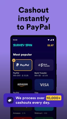 Survey companies are scamming you here. I don't believe it's Survey Spin itself. But they don't appear to monitor their partners. After spending 10 minutes answering 40 questions about pasta sauce to get sent back to the app for a 2 cent payout is completely wrong. ( This type of thing has happened several times in the short time I have had the platform. ) If you do manage to complete the Surveys and get to the minimum withdrawal , payout is quick, and that is the only reason 2 star not 1.