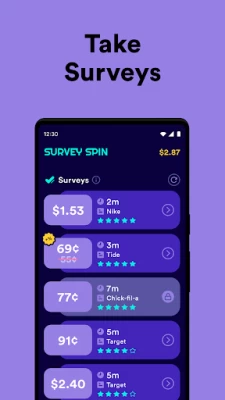 This app looks like it has potential, but unfortunately it is hard to qualify for any surveys, with it constantly being declined and disqualified. It seemed like a cool app until all the bugs that need to be fixed. Or another fact seeing a survey for 7 cents for 25 minutes survey, which is ridiculous. Update: can't qualify for any surveys, if do the amount is so small and the spins always land on nothing. This app is trash and isn't worth downloading.