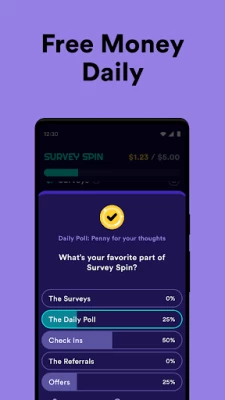 Hey survey spin I just have one concern. About this app I've been using. for quite some time. I've been noticed on the app a while back. that the 6¢ cent check ins on this app never works at all. and I was wondering to myself why is this even available on the app if it doesn't work which it never did. But if possible hopefully on the next available update. that 6¢ check ins would work properly. or maybe if possible another option that will work better. ☺️