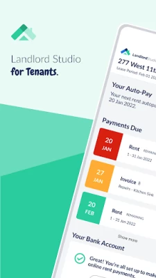 Renting has never been so easy. With Landlord Studio's app for tenants you can keep all of your important lease details at your fingertips, pay rent with a few quick taps, and request maintenance and repairs with ease.