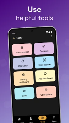 I’m thoroughly impressed with the Testy app! It provides detailed and comprehensive information about my phone’s hardware and software, offering a full battery of tests to check nearly every sensor that reports data – all after you grant the necessary permissions, of course (which is done at the time each is required, and not all at once, which I appreciate). The user interface is clean and well-organized, despite the app's numerous features, making it easy to navigate without feeling cluttered.