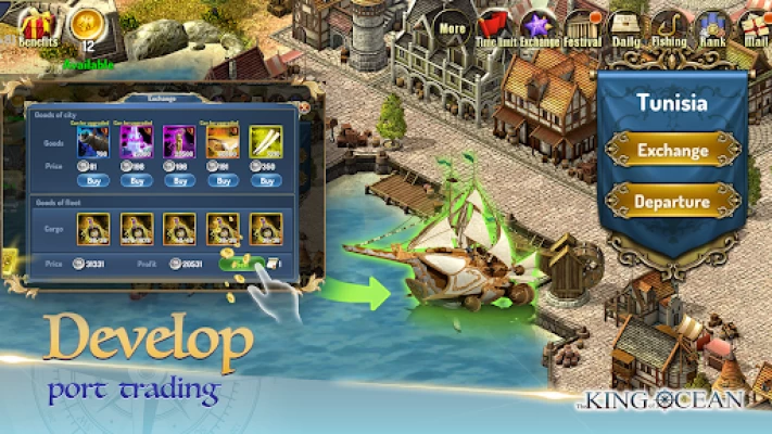 In King of Oceans, the trading prices largely depend on players’ trading behaviors – centralizing the trading of certain goods may cause prices to fall drastically in the city. Powerful players may even dictate the price fluctuation of the commodities. The rapid and constant changes bring extreme excitement about the unknown to every deal.