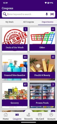 The app is super easy to use. I'm able to clip coupons and also able to use my rewards.