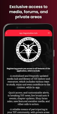 Pretty great! I love that the homepage upfront states the purpose of TST, for anyone who may be new to the idea. I encourage also to go to the FAQ section and read further on beliefs of the satanic temple. Excited for the in app media center soon to come as well as TST playlists! LOVE the merch they have available and so excited to see new stuff as it comes. Overall app functions well and if you support progressive movement, I recommend supporting TST.
