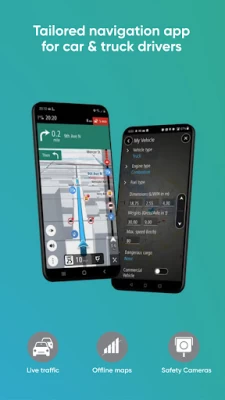Regularly updated maps stored on your phone for GPS navigation without an internet connection, with real-time Live Traffic and Speed Camera Alerts. Install now using the FREE TRIAL offer 😎