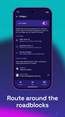- App-level censorship resistance: When access is blocked, Tor VPN may help reconnect your essential apps to the internet. (Beta limitation: This early access version has limited anti-censorship capabilities and users may face connection issues)