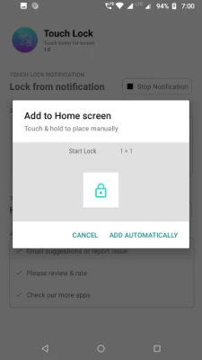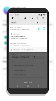Simple and effective! I use it specifically for when I'm giving my phone to someone else to use Google pay. One thing I'd like is if I could choose to disable the touch menu buttons as well. Or even choose for specific apps to disable them perhaps?