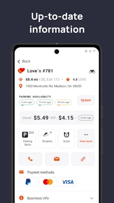 Excellent app for truckers ! The only thing I wish it showed more parking availability history, just like Trucker path app . Only 3 times of history shows on this app. Not able to predict parking availability without days and weeks of history. Missing many low bridges. But no annoying ads at all .