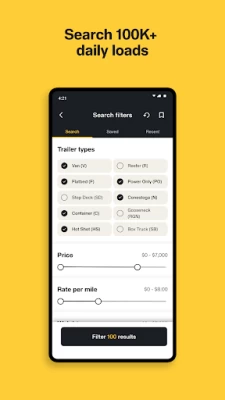 very good load board app. easy to use. the only issue I have is that not all loads show the rate of the loads, and I have encountered that the load board don't remove quickly the loads that have been taken from other drivers