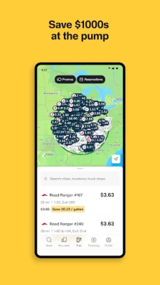 cheapest fuel discounts at some stops. need more fuel stops added. overall very good on fuel though. load board is pretty decent too. has same loads as other boards mainly but it's good in conjunction with the fuel. have recommended to friends already.
