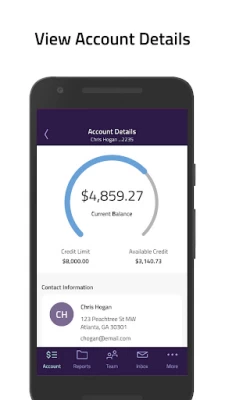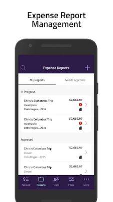 Truist Commercial Card Management App users may view their account balances, available credit, and credit limits. In addition, users may create and submit expense reports.