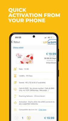 The purchase process was very convinient and the prices are compatitive and very reasonable. The only gotcha I had face was using the eSIM QR code on the same device. I ended up taking a photo of the QR code with another device and using the picture to scan the QR code to my phone (under connections->Sim manager -> add) (Samsung s21 ultra). Customer service was also very nice and responsive.