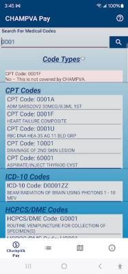 Whats the purpose of knowing if Champva covers a procedure? Are you going to ask thr doctor to wait while you check each code beforehand? Would you deny a procedure that you needed? Seems like a useless app conceived by the planet's largest and most bundleing beuracracy