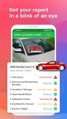 Try VIN Number Scan and License Plate Scan App to get VIN Reports for User card sale! Our app is a powerful alternative to CarFax that's easy, fast, and affordable. Our VIN Scan and License Plate Scan app that delivers used card report from CarFax and AutoCheck reports in seconds.