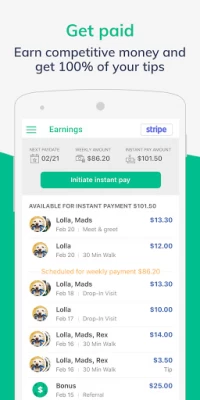 So far not great. Not only does the app take forever to load up, it never gives me walks or sits within a 20 mile radius. On top of that, it said that the next pay date would be on the 29th of September. Now it's changed to December 1st. Not all of us can wait that long*Edit* Really it's good. It's difficult to manage, and do i really need to mark WHERE they went to the bathroom? It's not first come first serve either. I have been declining multiple drop ins and walks bc the owner doesn't choose