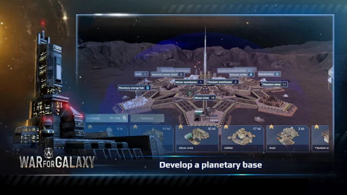 Become the ruler of the entire Galaxy: colonize planets, extract resources, build defenses and fight in planetary battles! Develop your alliance and consume entire worlds with your team! Feel the role of the head of the entire cosmos in War For Galaxy!