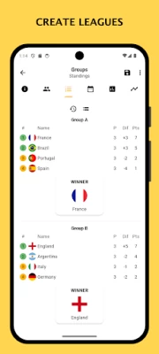 The app is great. I've been using it for 5+ years and I've found the features useful. Only downside is that if you have an uneven number of players promoted to a knockout (e.g. 10 or 12) it doesnt automatically create a bracket if you check the box that pops up. Futhermore if seeding could be used from a group/league stage into a knockout that would be great. If these things were added it would be 5 stars
