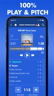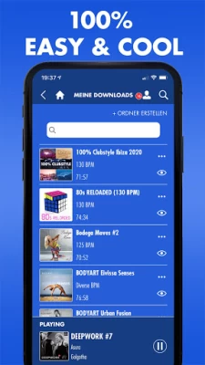• BPM Pitching without range limit • Fix your individual BPM by tapping in your own tempo • Import of all former downloads purchased in the WOW! Online Shop • Create your own playlists out of the tracks from your downloads or from your Playstore library • Intuitive and easy user interface