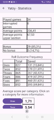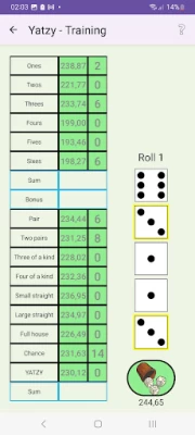 Unlock achievements and challenge yourself. Leaderboard – see your best results. Replays – analyze your game rounds. Detailed statistics – track your progress and discover patterns in your play. Training mode – get tips on the best moves after each roll.