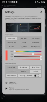 12/28/23 UPDATE: I'm now unable to access the theme. It was removed from my phone & making me pay to DL it again. UPDATE: After following the developers instructions i was able to get it to work with no problems. great theme. tyvm. ORIGINAL paid for pro version but am unable to use it on my note 10+ 5g. Whenever I try to set this as my homescreen thru KLWP it gets stuck showing the settings overlay on top of everything & will not close. Will fix rating if someone helps me fix this.