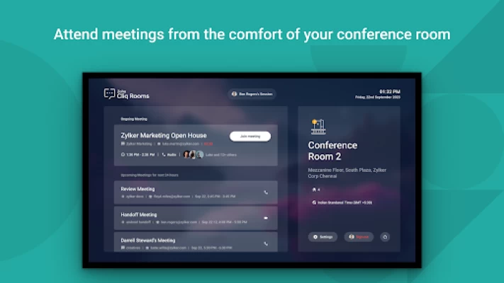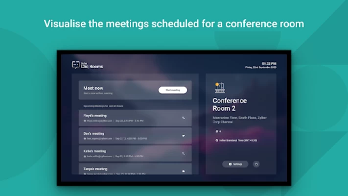 Evolve the conference rooms in your office into smart rooms with the Cliq Rooms for TV. Cliq Rooms, allows you to initiate and join, audio and video meetings from the conference room with an android tv. Use the big screen of your tv to effectively collaborate with upto 1000 colleagues that are working remote or in a different work location, right from your office conference room.