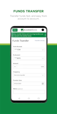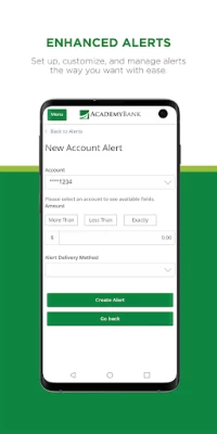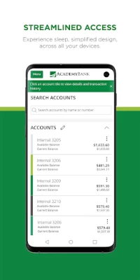 Overall a decent app, Pros- 1. Instant and free checking to savings, and vise versa, money transfers. 2. Transfers through Zelle. 3. Extensive in-ap settings options. Cons: 1. Account balance often inaccurate due to pending transactions not immediately factoring in (checking balance jumps around). 2. Academy's secured credit card shows inaccurate account balances due to very slow update times.