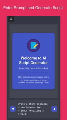 Ai Script Writer is an impressive app! It streamlines writing, generates creative scripts quickly, user-friendly interface, saves time, sparks ideas, perfect for storytellers and content creators.