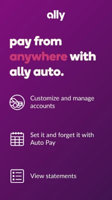 Functionally the app is good. But, UI, UX is garbage. 1. Doesn't play well with password managers. If lastpass fills in the password, there is no option to click 'Okay' or 'Enter'. I have to work around by closing the keyboard and opening it again to be able to enter. 2. No other authentication modes supported. No fingerprint access. 3. The app name is generic and unintuitive. 'Mobile pay' is a horrible name. How am I supposed to remember to look for 'Mobile pay' instead of 'Ally Auto'?