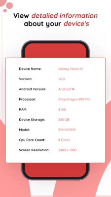 - Device Info: View detailed information about your device’s hardware and software, including firmware and IMEI numbers.