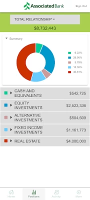 Convenient and secure access to your trust and investment information wherever you are with Associated Portfolio Online Mobile App. The app provides a snapshot of your total wealth, making it easy for you to share information with your trusted advisor, making informed financial decisions based on your goals.