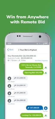 I really like the saved asset function. All the potential properties are viewable right away. Remote budding is awesome. I can place a from any where in the world. Moody of the time, I'm not able to attend the line auction. I recommend this app to every real estate investor.