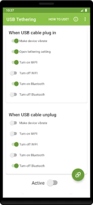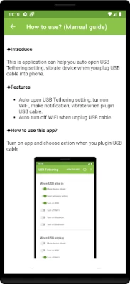 Does not work as shown and described. It creates a permanent notification. But nothing happens when you connect USB cable. It does not open USB tethering dialog